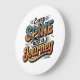 Purchased this online and it got delivered quickly. It was a present for my Dads 70th birthday. He loves clocks so decided to get him one with something written on it. Battery went in and it started working straight away. Dads had no issues with it. Printing was just how it came up online.