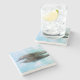 The coasters are gorgeous, a quality feel and heavy weight. They look like a precious archeological find. A rustic stone juxtaposed with a modern floral black and white print. I like the way the print goes slightly imperfect on the cut stone edges giving them a kind-of natural beauty.