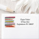 These return address labels have a mid-century modern design of horizontal coloured lines on a vertical black line with circles.