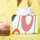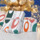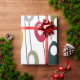 This wrapping paper has a mid-century modern design of horizontal coloured lines on a vertical black line with circles.