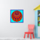 The viewer may perceive that either the colourful 'plates' inside the red 'cage' are spinning fast - or - the red 'cage' itself is spinning. Moving optical illusions are usually created by adding black and white shadows around the shapes. Here it is done by the perception of pulsation, without shadows.