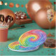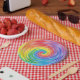 A colourful array of bright rainbow colours that have a transparent like texture to it, swirled to give it a spinning kind of feeling.