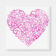 Valentine’s Day gritting card with folk art isolated illustration pink heart and spiral pattern drawing in handwriting style