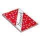 Personalise the homework text to any message on this little flowered red spiral notebook, the centre stripe can also be changed to any colour. The red background can be switched to any colour.