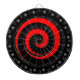 Wild looking spiral design covers this regulation dart board along with a starry side border. Black spiral over a bright red