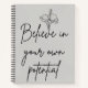 Empower your daily journaling with this elegant spiral-bound notebook featuring a minimalist floral sketch and the uplifting quote: "Believe in your own potential." Ideal for students, creatives, and dreamers who seek motivation in every page. The lined interior offers ample space for reflections, plans, or poetry. A perfect gift for anyone starting a new chapter.