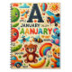 The cover of this kids' spiral notebook bursts with vibrant and cheerful illustrations themed around the letter "A." Featuring playful characters like smiling apples, adorable bears, buzzing bees, and colourful aeroplanes, it creates a joyful and engaging environment for children. Bright colours, a fun mix of objects, and charming animations make it perfect for early learners.