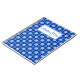 This Spiral notebook is printed with a Cosmic blue medllions tile pattern. It features an original repeating geometric design in shades of blue on darker blue.