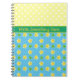 A pretty Spiral Notebook to personalise, with a pattern of Primroses and Green Polka Dots on a Sky Blue background, teamed with Yellow and White Polka Dots; part of the Posh & Painterly 'Primroses' collection.
