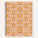 Spiral notebook with an orange pattern of beer mugs and pretzels on a peach background, displayed from front and back. Playful and festive vibe.