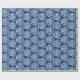 Wrapping paper in a block print pattern, based on a spiral seashell, in white on a cobalt blue background