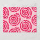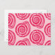 Postcard in a block print pattern, based on a spiral seashell, in deep fuchsia pink on a pastel coral pink background
