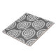 Ceramic tile in a block print pattern, based on a spiral seashell, in white on a deep graphite grey / grey background