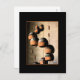 Light shines on a motionless segment of the simple globe and pitcher shaped terra cotta wind chimes that are set in a spiralled effect on this postcard cover. This photo is framed by a thin orange line and a wide black border. The image was altered with photo editing software. Click Customise it if you wish to add text on the front or back.
