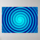 A vibrant neon blue gradient of royal blue or cobalt blue in an abstract of circular spirals in a twist of soft blue colours creating an illusion of a hypnotic and dizzying design.