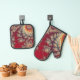 Spiralling Floral Pattern Oven Mitt & Pot Holder Set