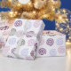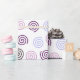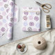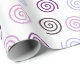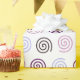 This wrapping paper has an art deco design of spirals in shades of purple, light blue, and brown, on a field of white. If you want the same design with different colours, message me.