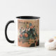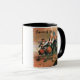 White and black 11 oz. ringer combo mug with an image, on both sides, of a vintage painting titled “Spirit of ‘76” (1891 version) by Archibald Willard.