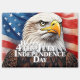 On US Independence Day, the bald eagle - a symbol of freedom and strength - rises in front of the waving flag of the United States. Its piercing gaze and the bold red, white and blue in the background represent courage, determination and the historic values celebrated on July 4. This image embodies the pride of a nation that stands for its independence.