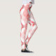 These leggings have a geometric design of concentric circles in shades of red forming two squares on a field of white.