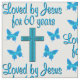 This 60 year old praises God every day of her beautiful and spirit filled life. This lovely woman has been loved by Jesus for 60 years. Enjoy this blue cross and butterfly 60 year design on Tees, Mugs, Tote Bags and Gifts. Your awe inspiring 60 year old will adore this unique and one of a kind 60th customised birthday gift that she will treasure every year. Celebrate turning 60 with a beautiful 60th birthday prayer. Give the gift of an original 60th birthday design to rejoice in turning 60.