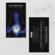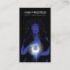 Tarot card reader business cards with a spiritual theme featuring an illustration of a woman holding a glowing moon.
