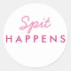 "Spit Happens" Baby Shower Sticker in Pink and White