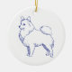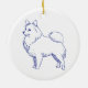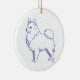 Classic blue and white design. Blue line drawing of the Spitz dog breed on a white background.