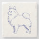 Classic design in blue and white. Blue line drawing of the Spitz dog breed on a white background.
