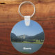 Typical Bavarian Scenery: Blue lake and cloudless sky, forests and green meadows and high mountains.