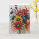 Brightly coloured bouquet of daisy-like flowers with splashes of "paint"