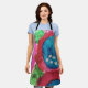 Bright splashes of colour cover this abstract all-over print chef's apron. Magenta, hot pink and deep blue colours dominate this fun artistic apron.
