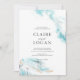 This chic and modern wedding invitation features a white background with splashing waves in turquoise blue and faux/fake gold. The reverse side features an abstract ocean texture. Personalise it for your needs. You can find matching products at my store.