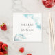 This chic and modern wedding napkin features a white background with splashing waves in turquoise blue and faux/fake gold. Personalize it for your needs. You can find matching products at my store.