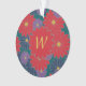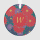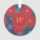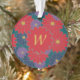 Large scarlet red, medium navy blue, and small royal purple daisy-like flowers are scattered across a rich jungle green background to create a colourful floral pattern that is perfect even for autumn. Customise the monogram on this ornament with your initial to make it your own.