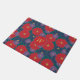 Large scarlet red, medium navy blue, and small royal purple daisy-like flowers are scattered across a rich jungle green background to create a colourful floral pattern that is perfect even for autumn. Customise the monogram on this doormat to create a personalised decoration for your entryway.