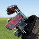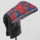 Large scarlet red, medium navy blue, and small royal purple daisy-like flowers are scattered across a rich jungle green background to create a colourful floral pattern that is perfect even for autumn. Customise the monogram on this putter cover to make it uniquely your own.