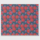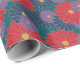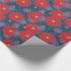 Large scarlet red, medium navy blue, and small royal purple daisy-like flowers are scattered across a rich jungle green background to create a colourful floral pattern that is perfect even for autumn.