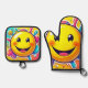 Splashy Happy Emoji Fun Oven Mitt & Pot Holder Set