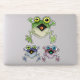 Three splat frogs on one sticker sheet, get all the colour variety and fun, stick these sill splat frogs anywere and make it look like a froggy got splatted on your car, notebook, or skateboard! Funny Frog Art by Erin Cooper