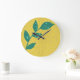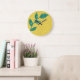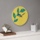 Splatter Green Leaf on Yellow Floral Wall Clock
