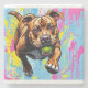 Splatter paint bit bull digital art stone coaster. Inspired by my baby girl Evans. Art done by me, with the help of Nightcafe AI (Flux Schnell Model)