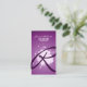 Your initial is emblazoned in a huge script font over a splatter of purple paint in this design. Your name and title appear on the top in similar script style. This design makes a flamboyant introduction to your name. The look is generic enough for this name card to be used in almost any industry or business.