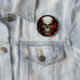 A badge / button depicting a sinister skull with glowing red eyes against a black, blood-spattered background