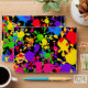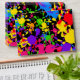 Illustration of colourful paint splats forming an artistic wallpaper background design. Image available on various gifts and products.