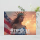 Celebrate American Independence Day in style! This impressive design features a modern interpretation of the Statue of Liberty with a majestic appearance, a dress in the colours of the US flag and a background full of fireworks and pride. Perfect for the 4th of July, patriotic events or simply as a statement of freedom and independence.