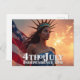 Celebrate American Independence Day in style! This impressive design features a modern interpretation of the Statue of Liberty with a majestic appearance, a dress in the colours of the US flag and a background full of fireworks and pride. Perfect for the 4th of July, patriotic events or simply as a statement of freedom and independence.