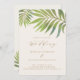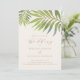 This whimsical wedding invitation design features palm tree leaves and gives a perfect tropical summer feeling.