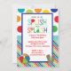 Adorable, polka dot & stripe splish splash birthday bash invitation. Also available in a pink colour scheme. Perfect for a child's birthday pool party, splash pad, beach, summer or any water theme party!