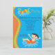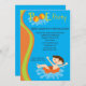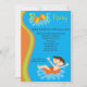 Splish Splash we're having a bash! Start your celebration off right with this adorable invitation. Perfect for that birthday girl's pool party. It has a bright blue background. To the left side of the invite is an orange wavy border with a green stripe down it. Next to that is an adorable boy in an orange tube floating in the water. At the top of the invitation it says "pool party" and the O's are beach balls. Check out the many other products and designs in this pool party line.©babystar